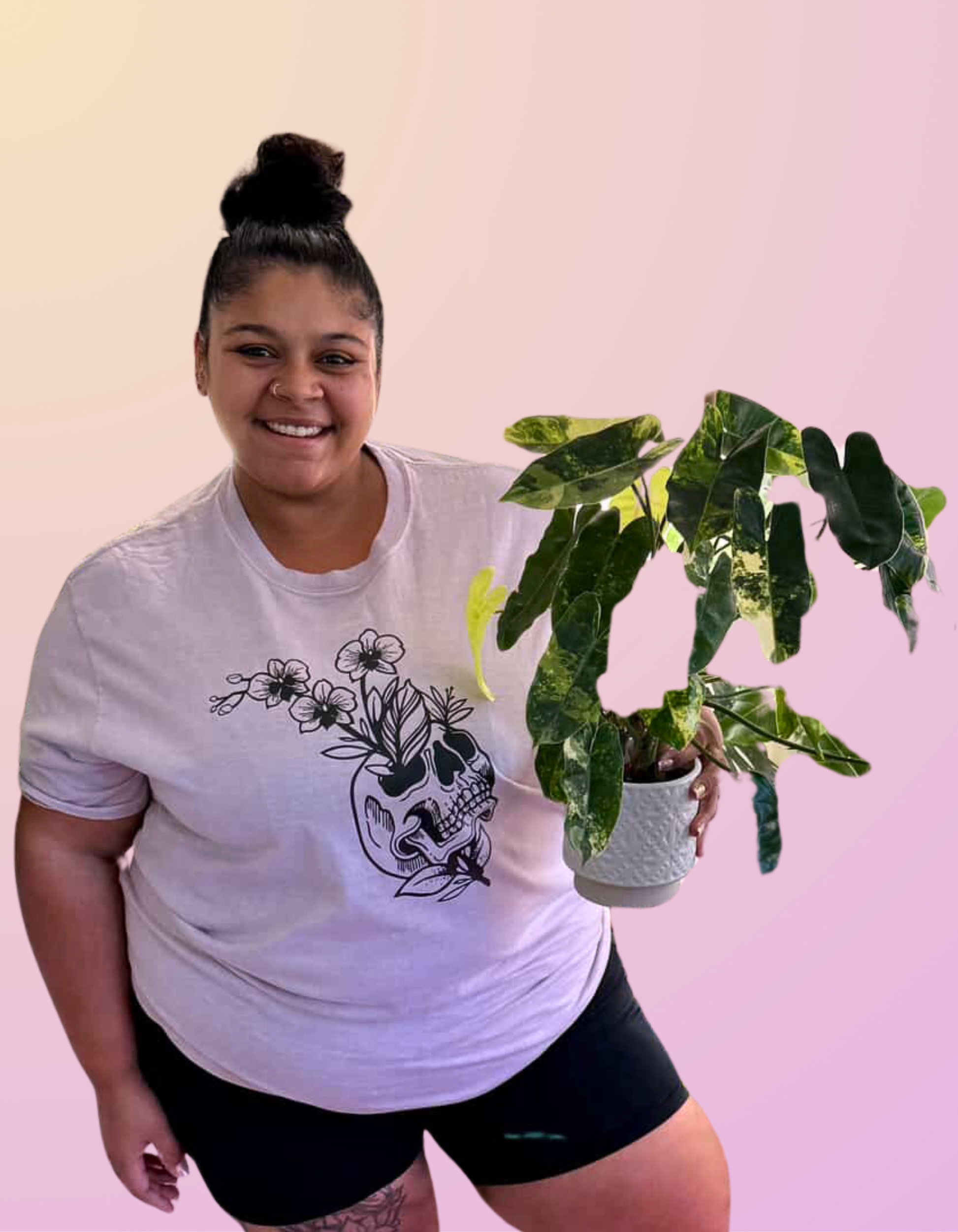 Washed lavender tee, black "Orchid Skull" logo.